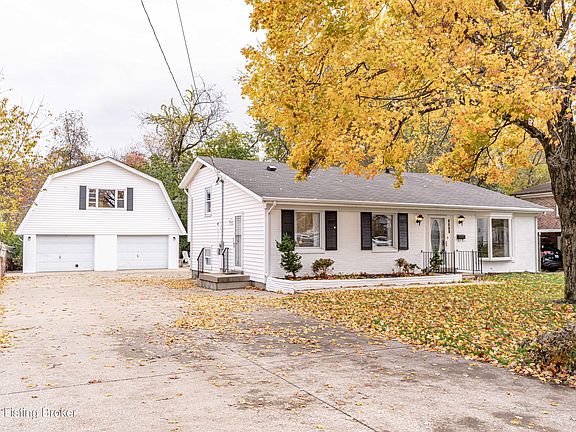 Spacious move-in ready 4 bed, 1.5 bath home with RARE open main living room floor plan in a sought after Fern Creek subdivision. This home has updated bathrooms and kitchen including new countertops. Hardwood floors under carpet. Walkout basement provides a 4th bedroom and entertainment space. Freshly painted throughout. HUGE 28 x 32 garage with 640 square foot of space above that would be perfect for future additional living space, entertainment area, or finished for your desired use. The long double wide driveway also provides ample space for additional cars or recreational vehicles. A large patio in the rear backs up to a farm. This home is a dream for anyone that desires a large living space, huge work garage, and has a need for sizeable parking, storage and entertainment areas.