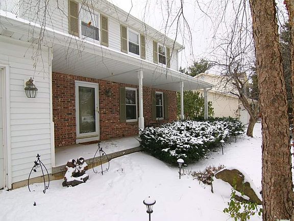 Best price in Stonefield Ridge. Sun-filled classic colonial. Professionally landscaped large yard w/ many perennials backs to green space. Main floor w/ refinished oak hardwoods in living, dining, and kitchen. Kitchen has plentiful cabinet/ pantry space & all appliances. Main level family room w/ brick wd burning fireplace & patio doors to backyard deck w/ benches. 2nd floor w/ 3 bedrooms, full hall bath & full master bath. LL has huge family room, full bath, newer carpeting, walk-out. Plenty of storage