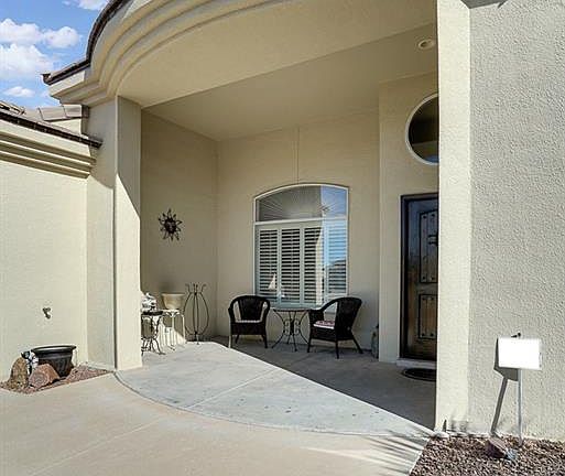 Beautiful Sanderson resale. This is the ideal house to come home to. This house features a beautiful pool & hot tub on a a cul-de-sac lot! The north facing backyard also includes a pergola covered outdoor kitchen and covered patio to keep your outdoor entertaining cool and comfortable. The open concept great room, kitchen and breakfast nook keeps everyone in view. The kitchen has stainless steel appliances, double ovens and the refrigerator which will stay. 4 Bedrooms 2.5 bathrooms assure room enough for everyone . The master suite is secluded from the other rooms and has an exterior door to the backyard, huge walk-in close, double sink vanity, separate shower and bubble tub. The front of the house boasts of a roomy formal living room and dining room.
