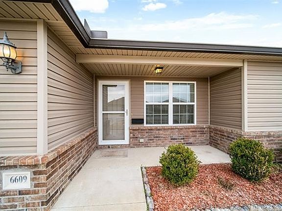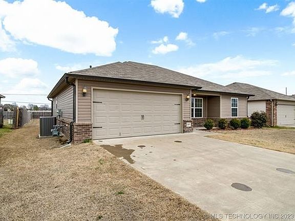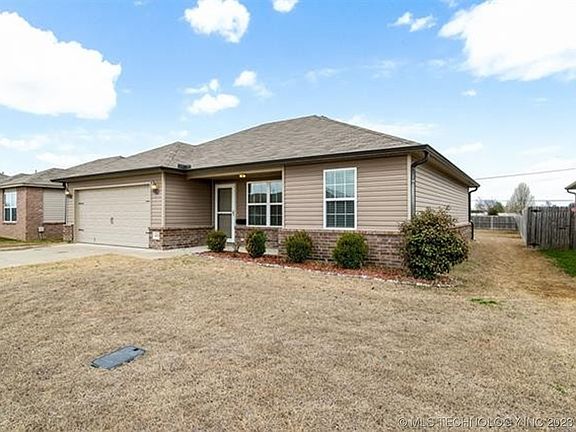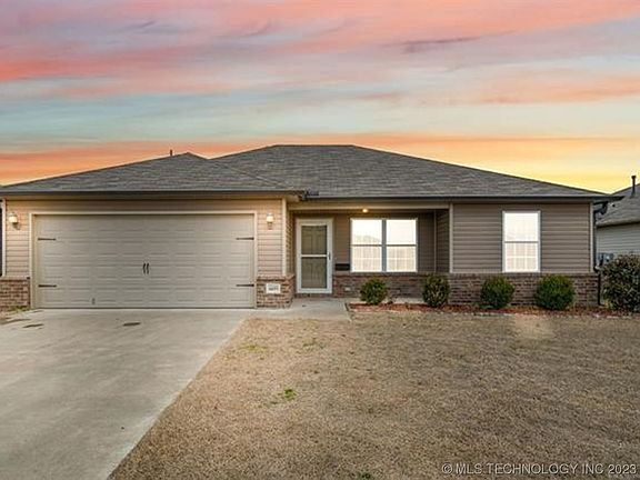 This Coleman Plan is pristine! So many upgrades! Granite in kitchen, cultured marble in bathrooms. Porcelain tile in kitchen, bathrooms and laundry. Luxury vinyl plank in living room and hallway. 9' ceiling in living area. Upgraded lighting and ceiling fans. Locking storm doors on both front and back door. Master bath with double sinks has walk in shower and professionally installed grab bars. 10 x 10 covered patio. Garage door opener. Gutters installed. Large backyard with no neighbors behind! Great location just on the outskirts of Owasso!
