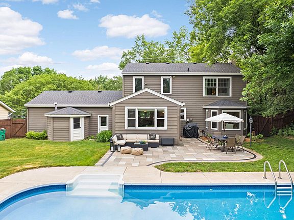 On nearly a 1/2 acre private lot tucked on a quiet SW Edina street, you’ll find this well-kept center hall colonial w/an outdoor oasis. Cool off in your beautiful, secluded pool, overlooking your wooded lot full of privacy, and entertain on the natural stone hardscaping. Inside you’ll find refinished hardwood flrs and a blend of formal & informal spaces. The sun filled kitchen opens to your living room w/eat-in kitchen. French doors open to the office/main floor BR. Mudroom & oversized 2 car garage with epoxy coated floors. Upstairs you’ll find the primary bedroom sanctuary, w/ large windows overlooking your private backyard, custom built-ins, massive walk-in closet, and attached primary bath. Two addl bedroom up, with large full bath, plenty of storage including space for future laundry rm. Basement offers a cozy entertaining space, and over 400 sq ft of unfinished potential to increase equity, by adding bath + BR. So much potential here. Walk to Braemar, golf, hockey, parks & trails.
