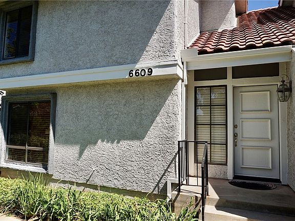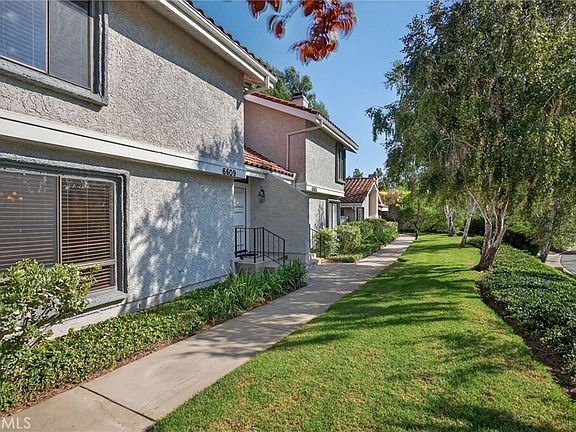 Welcome to 6609 Poppyview Drive nestled in the sought after community of County Village which is in the Oak Park area of Agoura Hills. Upon entering this lovely townhome you are greeted by the large living room with a beautiful fireplace that is open to the dining area. There is a mix of stone and beautiful wood  flooring throughout the lower level including the kitchen and eating area.There are 2 separate sliding doors for access to the patio with lots of entertaining space. Upstairs you will find the spacious private primary suite with 2 closets and an upgraded ensuite that has a walk-in shower and double sink vanity. Take a look at the hidden medicine cabinets behind the mirrors!!! One of the secondary bedrooms has access to the very large patio for additional outdoor space for your gardening or relaxation. The direct access large 2 car garage has epoxy floors, lots of cabinets and includes the washer and dryer. Across the street is one of the community pool areas, so convenient!!! It's a great location with close proximity to award winning schools, parks, trails and beaches.