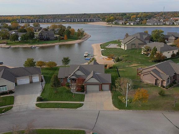 5 bedroom plus an office w/ a window, 4 bath home on Ridge Ports 40-acre boating/skiing lake Neutral decor throughout the home with wood laminate flooring, granite counter tops, split bedroom plan, lake views galore and a walk out basement with seperate family room/ rec room ideal for entertaining. Oversized back yard leading to a sandy beach. This home comes with a dock set up for a single slip & jet ski dock (It is shared with the neighbor to the east who has their own slip & boat lift) Ridge Port neighborhood is located in the Maize School district in West Wichita & conveniently located near the shopping & dining options of New Market Square & is just a few miles from HWY96 to get anywhere in town easily. It includes a neighborhood pool, basketball, volleyball & pickle-ball courts. This one-owner home has been well cared for and is on its last few months of special taxes.