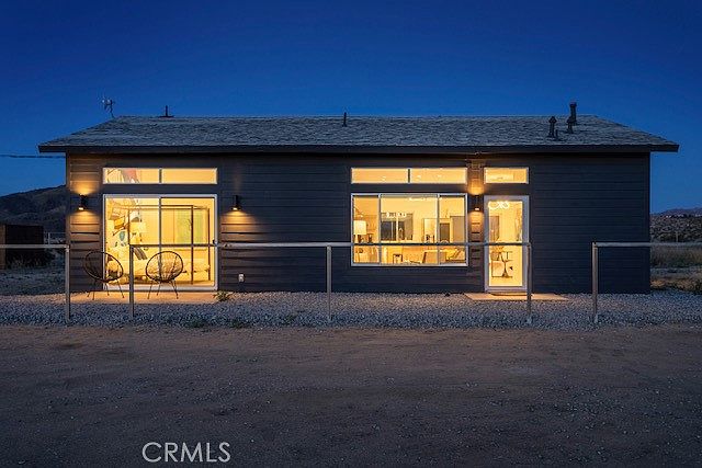 TRANQUIL..SOLITUDE..PEACEFUL..ZEN are just a few words to describe the experience of being at this fabulous property. Situated on 25! yes, 25! sweeping 360-degree view acres, surrounded by the Joshua Tree National Park mountains and just minutes away from the park entrance, this is the quintessential Joshua Tree home you have been waiting for. Fully remodeled in 2019, nothing has been left undone. From the new kitchen with Caesarstone countertops, new cabinets, upgraded appliances, polished concrete floors throughout and amazing spa like bathrooms with a soaking tub in the main bedroom. All new windows, including clerestories have been designed to give you views from every direction. Custom lighting, central heating and air and a tankless hot water heater. How about free water! from your very own 238 ft. deep well with a brand new well pump! The exterior delivers everything you could want to usher in that state of relaxation including a hot tub, yoga pad, outdoor shower, fire pit and a covered patio to soak up those one-of-a-kind Desert sunrises and sunsets. All furniture, finishes and interior features have been designed by HGTV and DIY network designer Doug Wiand. All interior and exterior furnishings and all contents are included in the sale. Totally Turn Key. Do Not miss out on the opportunity to own this one-of-a kind very rare property. Schedule your private showing today!