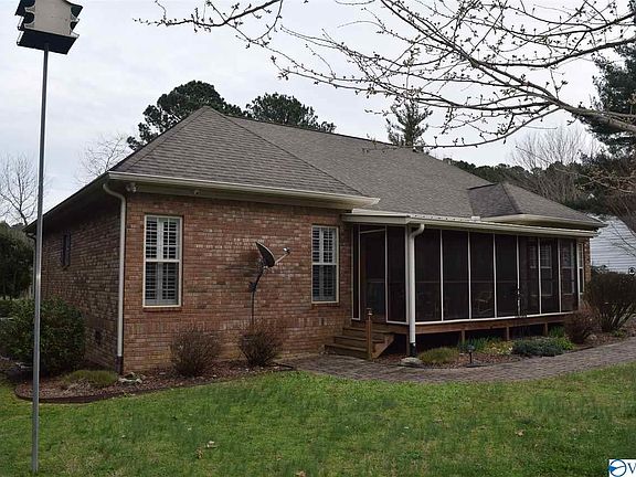 4 bedroom 3 full bath brick home located in a great neighborhood. Conveniently located to schools , shopping,10 minutes to beautiful lake Guntersville,30 to 45 mintues to Redstone Arsenal in Huntsville. Screened in back porch overlooks a park with shaded concrete walking trails.Home has custom made plantation shutters through out . Nice large laundry room ,living room,dining room,foyer and downstairs hallway has hardwood floors ,kitchen has tile floors.9ft smooth ceilings throughout downstairs.Upstairs has a great man cave or extra area that could be used for 5th bedroom if needed,plus 4th bedroom and full bath in this area as well.