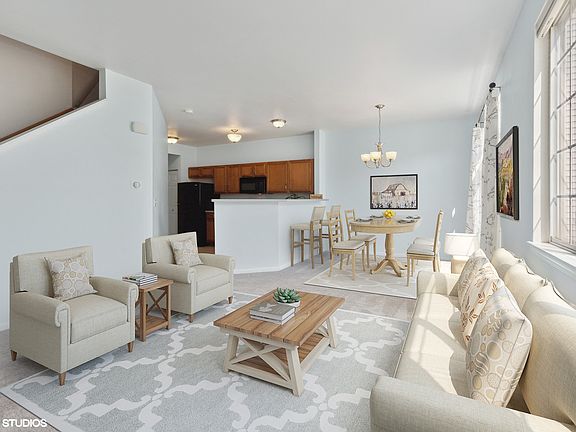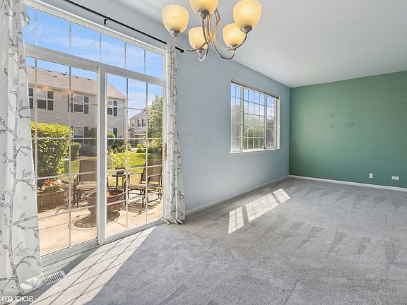 Charming maintenance free, 2 bed, 2 1/2 bath townhome located in The Glen at Lakemoor Farms is looking for you! This beauty has a nice open floor plan with large windows and sliding glass door which gives a lot of light and sunshine. Perfect home for first time homebuyer, starting over, downsizing or investment property (units can be rented). Features include: SS appliances including a newer stove (2 years old), newer dishwasher (3 years old) and newer furnace (3 years old), upstairs bedrooms and bathrooms freshly painted and the carpet throughout is brand new. The kitchen is spacious with plenty of cabinets and countertops as well as an eat-in dining area and pantry. The family room is a nice size with lovely views of the backyard and conveniently close to the kitchen. Other features include: nest thermostat, 2nd floor laundry with full-size W/D, walk-in closets in both bedrooms and large storage closet/utility area on the first floor. The primary bedroom is large with views of the backyard and features an En-suite with a large walk-in closet. The patio is ideal for entertaining, grilling or playing and is located right outside the kitchen. Have peace of mind knowing exterior maintenance is covered as well as lawn and snow removal. There is a community park/playground and gazebo right across the courtyard from this home. Walking distance to Heritage Community Park where you can enjoy basketball, baseball, soccer, large playground and several community ponds and walking paths. Close to restaurants, shops and major roadways. The unit above with the balcony is located over the garage and not part of this unit. Hurry this one won't last! Quick Close Possible. Sold AS-IS.