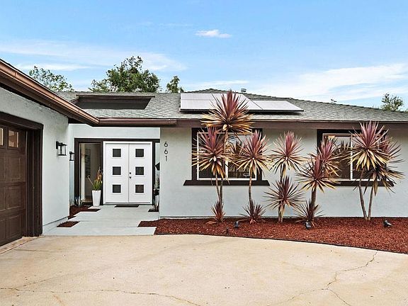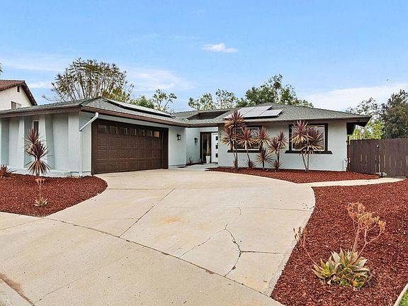 Discover the perfect blend of comfort and convenience in El Cajon, CA. This beautifully renovated 4-bedroom, 2-bath home is ideally situated on a quiet cul-de-sac, offering privacy and a peaceful living environment. The home features a modern, solar-powered system ensuring energy efficiency and lower utility bills. Inside, you'll find a spacious and inviting floor plan that includes a stylishly updated kitchen with new appliances and fixtures, perfect for the home chef. The living areas are bright and airy, highlighted by fresh paint and contemporary flooring throughout. Each bedroom is generously sized, providing ample space for family and guests alike. Step outside to the backyard oasis where a sparkling pool awaits, ideal for entertaining or relaxing on warm sunny days. The pool area is complemented by low-maintenance landscaping, creating a tranquil retreat. With its recent top-to-bottom renovations, solar enhancements, and an enviable location, 661 Balsam Ct. is not just a house, it's the perfect home for anyone looking to enjoy the Southern California lifestyle to its fullest.
