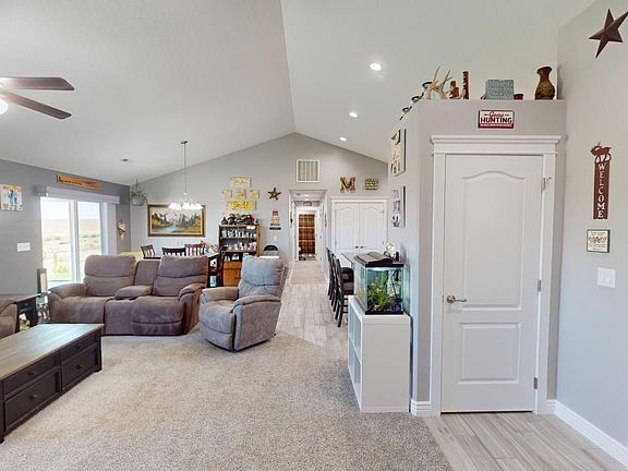 Welcome to 661 Bluegrass Drive, This is the Calente model built by Beck with several upgrades. Upgraded siding, insulated garage and flooring to name a few. The kitchen features stainless steel appliances and granite counter tops. This spacious 1750-square-foot home sits on a fully landscaped and fenced 3.31-acre lot. Enjoy the tranquility and stunning views of the Ruby Mountains. The covered patio is perfect for relaxing or entertaining. Inside, a cozy pellet stove adds warmth and charm to the open living spaces.The Home features 4 bedrooms and 2 baths, providing ample space for a growing family or guests.