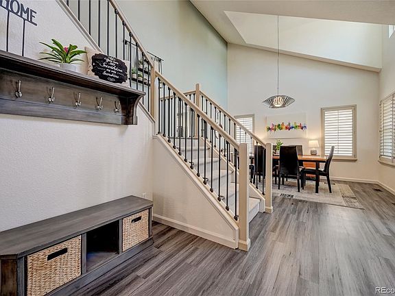 Entertainers Delight! Beautifully updated 6 bed, 5 bath, home in Castle Pines North! Step into the bright two-story foyer and you will immediately notice the newly remodeled stairway and gorgeous wrought iron spindles! To the left of the entry you will find an oversized laundry room and adjacent main floor bedroom (currently used as an office), and jack-n-jill 3/4 bath! Just beyond this is where you will find a cozy family room complete with soaring ceilings and a mesmerizing linear fireplace! Cook or bake till your hearts content in this stunning, newly remodeled kitchen which boasts a Smart refrigerator, TWO sinks, TWO dishwashers, THREE Ovens, 6-burner gas stove, Beverage Cooler, Microwave, Huge Island, Quartz counters, seemingly endless counter space for baking or parties, lots of soft-close cabinets and drawers, large walk-in pantry and an oversized picture window to watch the sunsets! From the kitchen, take a stroll through the spacious two-story dining room and up the stairs to find a large master suite, five-piece bath, walk-in closet and amazing views! The upper floor includes 3 additional bedrooms! Bedrooms 2 and 3 share a jack-and-Jill bath. The large 4th bedroom has an en-suite full bath! Venture back downstairs to the walk-out basement where you will find the perfect mother-in-law or guest quarters complete with a large bedroom, 3/4 bath, an office/bonus room, kitchenette including sink, dishwasher, beverage cooler, and microwave. There is yet another dining nook, and another family room! Enjoy the sunsets from the large deck! The backyard is fully landscaped with AstroTurf (no mowing!), lounge on the patio while your pups play in the covered, fenced dog run complete with a waterproof ceiling! New LVP Flooring (2022), Plantation shutters, New tankless water heater (2022), New Roof (2022), New paint inside and outside (2021). Community pool, trails, parks, close to I-25, golf courses, restaurants and shopping! Welcome Home!