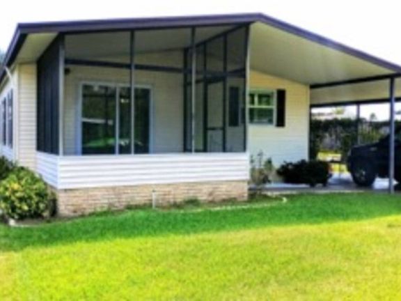 SALE PENDING---This newly upgraded home has everything! Located on a corner lot on a quiet street. The Cooley C3 membrane roof reflects away sunlight thus keeping your electric bills lower. The air conditioner is just a couple of years old. Both roof and A/C have transferable warranties. Pipes under the home were replaced just a year or so ago. The golf cart also is being sold with the home and has a recently purchased charger and batteries. This 44"x 24" home is a 1990 Home a Merit. The home comes mostly furnished. All floors have plywood subflooring and new wood laminate with the exception of the second bedroom which is just waiting for you to decide if you want carpeting or laminate. The kitchen has a nice tile flooring. The Refrigerator, microwave, sink, dishwasher, and cupboards are all only 2 years old. Under the sink is a water purification system. So no more buying bottles of water.! The counter tops are Laminate. A nice pantry gives you plenty of room to store all those extra foods food you purchase when you buy one get one free. This two bedroom home has very large bedrooms. A King size bed will remain in the master bedroom. The living room will also be furnished with like new beautiful furniture. The bathrooms are large and one has some additional storage. The front screened lanai is very inviting. Screens all look nice. A pretty large area rug covers the floor. The windows in the home are also new. Nice storm windows thermo-paned that are designed to keep you safe in bad weather. This home has nice blinds and shutters as well as ceiling fans and in the kitchen you will find a skylight. As you go back outside you will pass through a nice room that would be just right for an office or sewing area.. Out side you will be happy with your long designer driveway and carport. At the end of the driveway is a large shed which will hold all you tools, lawn care and much more!! Please call Lucky to show you this Beautiful Home any day or evening. Lot rent is $537.49. This home is located in Swiss Golf and Tennis and Hidden Golf community, Within the gates of this community you will find 2 club houses, one for Hidden Golf and one for Swiss Golf and Tennis. The Hidden Golf gate is located on highway 17 and the Swiss Golf and Tennis is located on Lucerne Park road off of Highway 544. The members of each community enjoy sharing many activities. Don't feel like fixing dinner or going out with your car? Hop on your golf cart and visit the nice restaurant or the Pub. Enjoy evenings of Bingo, Karaoke, Parties and Dancing. So much to do you should never get board! Games, Card games, water games, tennis, pickle ball, shuffle board, fishing, boating, (this village is located on the shores of Lake Henry. Golf, Chorus Groups, Charity Clubs, Volunteering, so many things to do, or just take a nap by the pool. Disclosure: Information is deemed to be correct but not guaranteed.