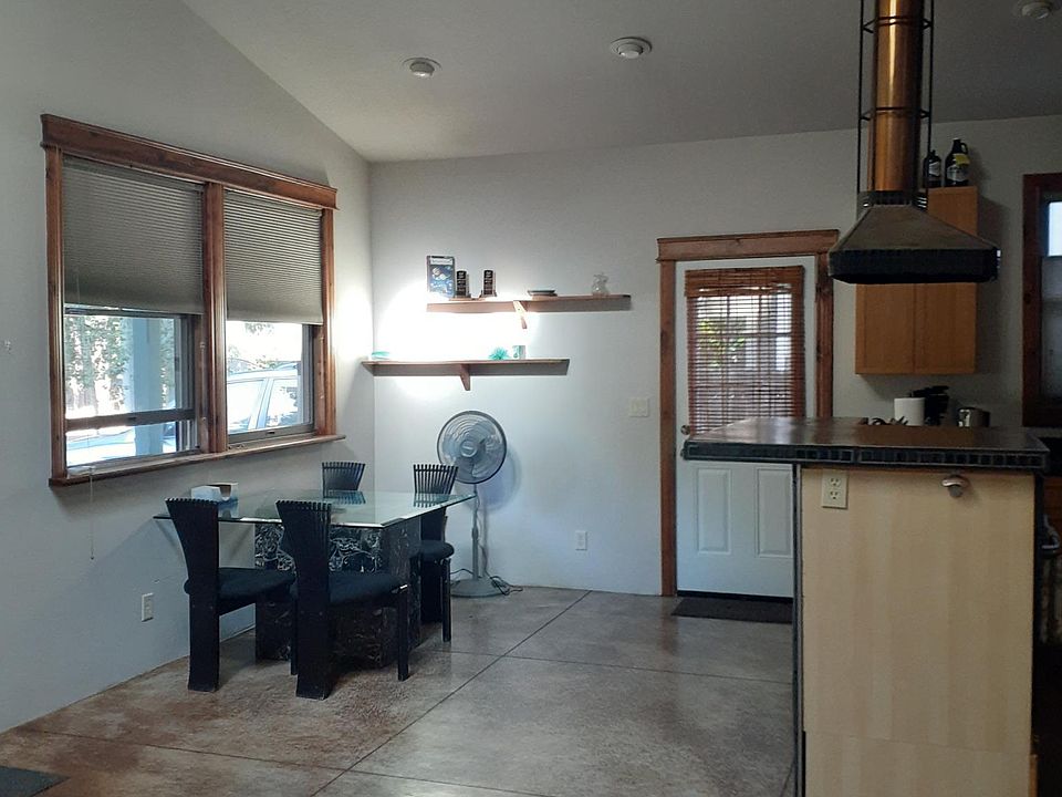 Quiet street in Mountainaire. Concrete floors with radiant heat really help keep it clean and don't dry the air. I built this house to feel open and spacious in the master and living room/kitchen, while the second bedroom is more modest. Plenty of parking and a fenced backyard, dog door included. I built this house, this property is reserved for 2 people and 2 cars max. I promise, it's a nice place to live. 1 year lease, unfurnished, $2300 house was once a successful Airbnb before I got tired of them and went long term. Photos are of old setup. Tenants are moving out May 25 and can be viewed then. Available June 1 if necessary.
