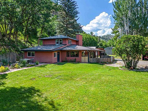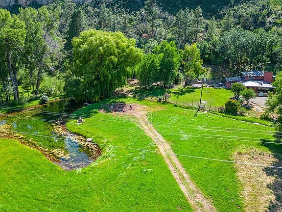 Junction Creek frontage, bordering public lands, irrigated horse property, tastefully remodeled, and only 1.5 miles to the fairgrounds and Durango Rec Center. Junction Creek runs through the northern portion of the property, while a spring-fed pond covers the west, beautiful cliffs to the south bordering BLM and CO State Land, surrounded by irrigated pasture for the animals, lovely and mature landscaping and gardens, cliff views, old-growth trees, making this ranch home on 11+ acres a little slice of heaven. Set up for horses, bring the donkeys or goats, the Quonset barn has paddocks, watering stands and two separate pastures for easy grazing. A large carport for parking toys, tractors, and an original detached garage for additional storage. Interior of the home is cozy and welcoming with loads of natural light in the living space, centered by a nice pellet stove for cool winter nights. Spacious kitchen with a breakfast nook looking out to the west patio and gardens. Primary bedroom on the main level with a remodeled bath. Upstairs in the home are two spacious bedrooms and a perfect vintage look bathroom that perfects the space. Mature landscaping includes outdoor seating area with pavers, a covered front porch for enjoying morning coffee, lilacs, huge willow trees, blue spruce, pines, and plentiful flowers. A private yoga studio built in 2022, with electric and heat, a perfect getaway for a reading room or some exercise, an office, or just a sweet space set amongst the trees. The home was remodeled in 2018 with plenty of new features, then again remodeled in 2021 to include new septic tank and leach field, new water heater, water softener, new boiler 2018, fresh paint, bathrooms, and more. This beautifully manicured property is ready for a new owner, can come mostly furnished, and ready for immediate occupancy. Enjoy country living, yet close to town, no HOA, no covenants, and space to enjoy. Bridge over Junction Creek was redone a few years ago, super sturdy. Close to all that Durango living has to offer, convenient to town, across the street from rock climbing and the Colorado Trail just down the road, 25 minutes to Purgatory and only a few minutes to the River Trail. Full RV hookups with electrical, water, sewer. Tiny home onsite can be purchased, but is not included in current list price.