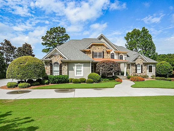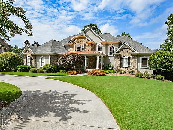 Sought after lake lot! Gorgeous lot on the lake and room for a pool. Extended covered deck overlooks rock garden, firepit, flat yard and lake. All new interior paint throughout. Open kitchen with separate eat-in area, fireplace, keeping room, and breakfast bar. Spacious laundry room on main with sink, washer and dryer, and built-in cabinets. Three car garage with an extra half bath in garage. Vaulted family room with tinted windows, built-ins and fireplace. Sought after master on main with trey and access to deck that overlooks the lake. Master bath boast trey ceiling, tile, Jacuzzi tub, tile shower and walk-in closet with built-ins. Two oversized bedrooms upstairs share a Jack and Jill bath and one large bedroom with private bath. Huge unfinished basement with high ceilings, stubbed for bath, bay window and french doors leading to patio. Relaxing front porch with circular driveway. Ready to move-in and experience lake life.