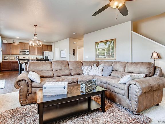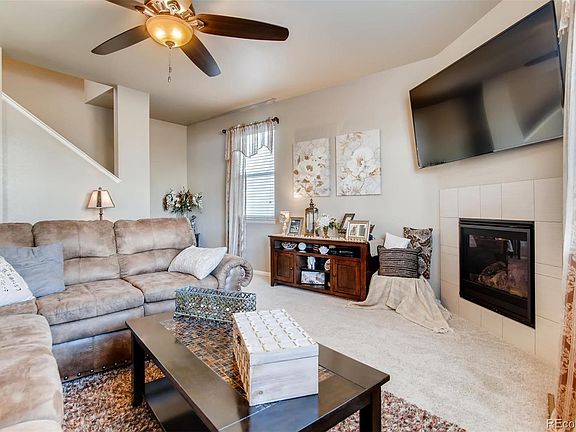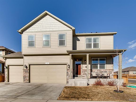 This two story-style home is located on a desirable corner lot location. Inside, you'll find beautiful wood floors, main floor office, a spacious great room with a corner gas log fireplace and a gourmet kitchen featuring beautiful cabinets, granite counter-tops, a center island, a walk-in pantry and stainless-steel appliances. You'll also appreciate a convenient upstairs laundry room and loft sitting area with four generous bedrooms off it, including an elegant master suite with an expansive walk-in closet and deluxe bath. Home features upgraded light fixtures through out and ceiling fans. A unfinished basement adds many additional options for possible future bedroom and bathroom as well as a rec room. A covered front porch and rear patio and front-entry three car garage complete the home. Beautiful stone exterior! The location provides easy access to shopping, dining, and recreation, including nearby golf courses and Barr Lake State Park, as well as close proximity to area hospitals, I-76 and E-470. Master-plan community amenities includes a clubhouse with lap pool, splash pad, parks & playgrounds, Dog Park, trails, recreation center and a social coordinator.