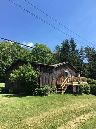 Lovely raised ranch with 2 bedrooms & 1 full bath that sits on a 2 car, tandem style garage. Main floor offers natural light w/ skylights & open floor plan. Front deck has gorgeous views. House is well maintained and is bordered by state forest.