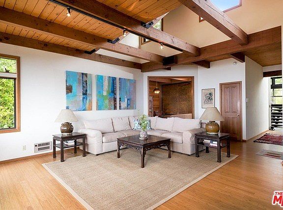 Panoramic ocean, city & mountain views! Atop Santa Barbara's famed Riviera on almost a quarter acre sits this mid-century modern gem. Upon entering the oversized steel front door you are awestruck by the sundrenched atrium leading you to dramatic great room featuring tongue and groove high beam ceilings & walls of glass overlooking The Pacific. Up the steel staircase find a glorious guest bedroom/studio suite bringing versatility to this 4 bedroom/4 bathroom home. Enjoy a front row seat to the breathtaking views from multiple outdoor entertaining areas including deck with sunken hot tub and pergola surrounded by fruit trees.