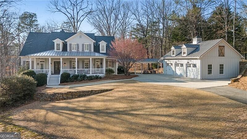 Effortlessly appealing in the most desirable equestrian area of SE Cherokee County on a private, scenic 6 acre lot. Beautifully renovated and exquisitely maintained, this home is a joy to show. Postcard perfect, this property will captivate your heart. From the timeless front porch, to the impressive chef's kitchen and luxurious master bath you'll appreciate every inch of this home. NEW ROOF. Sunset views from the screened porch overlooking spectacular hardwoods. Back yard is POOL READY. 3 car detached garage with breezeway connects to mudroom. Master suite on main. 3 generous bedrooms up w/ 2 full baths. Finished terrace offers media/recreation room, bedroom, full bath and workshop area with double door access to outside. Covered patio and fire pit gathering area in back. Adorable 3 stall shed row barn and garden area. Zoned Agricultural, so horses ok. Magnificent curb appeal showcasing the gated drive winding past the board fenced pastures. Such a gem located on one of the most beautiful quiet roads in an upscale acreage community. Property taxes currently $4,460 for 2023. See what SE Cherokee is all about! The Country Estates area of SE Cherokee borders the city of Milton and is an oasis of beautiful acreage properties protected by the County Land Use Plan of 2 acre minimum agricultural zoning. Prized for what it is not - no high density and no high taxes...but so easily accessible to city centers - Alpharetta, Milton, Cumming, Canton. There is a one page recorded covenant for Mitchell Farms subdivision, however, there is not an organized HOA.