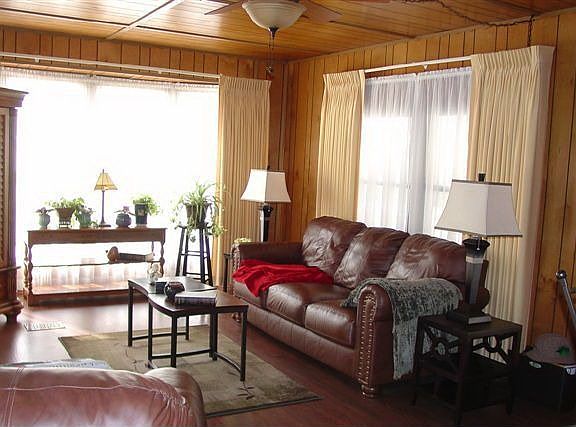 Near Bull Shoals Lake Access: 55+ Residential Park, beautiful spacious open and clean 910sf 2 bed 1 bath single wide mobile home. laminate wood floors, large eat-in kitchen w/arched breakfast bar and lots of cabinets with pull-out shelves, central heat & cool. Wake up to a panoramic view of trees and wildlife out the master bedroom windows. Space rent includes pad,water,sewer, laundry facilities,garbage pickup,lawn maintenance, club house privileges, 17 x 9 screened sun deck overlooking woods and wildlife, 10 x 11 carport, 12 x 8 storage bldg 20 x 12 covered patio, at least 1 resident must be 55+ No Real Estate Included. $18,000 # 93680