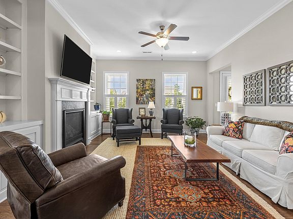 Prime Wake Forest neighborhood and wonderful home site overlooking large courtyard from 3 porches. Meticulously designed and maintained home w/ gourmet kitchen, large island, upgrades galore. Holding Village has trail access to several parks, 14 acre lake, Community Pool, playground. Lawn care included in HOA fee. Gas fireplace, ---hardwood floors, walk-in closest, loads of storage. This one will not last long.