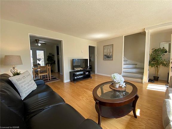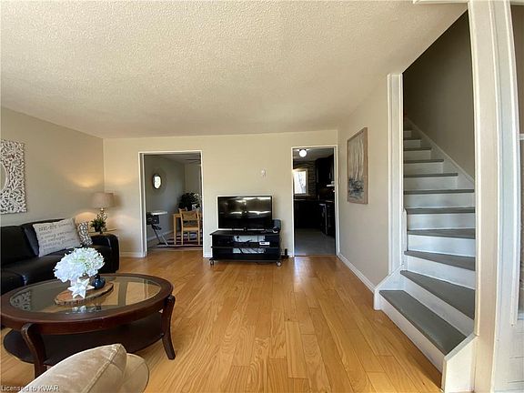 Location Location Location!!! Att: All Investors and First-time homeowners! Amazing Value in this Fully Finished 3 Bedroom 2 Bath FREEHOLD Townhome (NO CONDO FEES)and backing onto Greenspace! Commuters dream with Easy access to the 401 and HWY 8 and walking distance to great schools. Shopping and Entertainment are also only minutes away! The main level boasts engineered Hardwood flooring, a Separate Livingroom and Diningroom with newer French doors leading to Private backyard and greenspace! Spacious kitchen with newer Stainless Steel Stove and updated backsplash. The Upper Level has 3 spacious bedrooms and a 4 pce bathroom. You won't want to miss the fully finished basement level with a huge recroom perfect for entertaining, a 2 pce bath, laundryroom and tons of Storage! Updated electrical panel! Call today as this one won't last long!