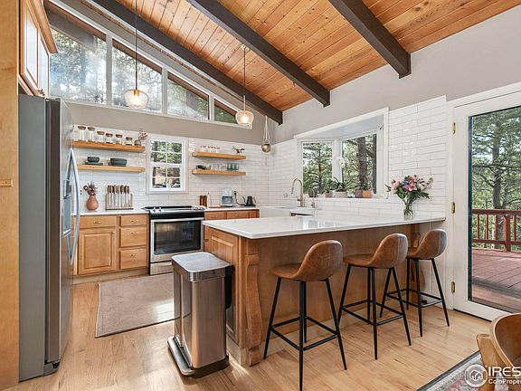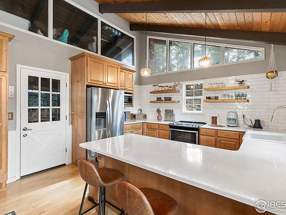 $50k PRICE REDUCTION! Nestled in the serene Boulder Heights neighborhood, this beautifully updated 3b/2b home offers picture-perfect mountain views from every western-facing window. Just 10 minutes from Broadway, you'll find the quintessential blend of mountain splendor, privacy, and convenience. Settle into living harmoniously with nature with the expansive deck that wraps around the entire back side of the home. The kitchen, updated in 2021, features a sleek, modern design with classic touches, ideal for both cooking and entertaining. Wake up in the lofty primary suite with a private bathroom and balcony. The expansive living room is a showstopper, featuring a beautiful brick fireplace with a wood-burning stove that adds both warmth and charm to the space, making it the perfect spot for cozy evenings. Unwind in the hot tub or enjoy the rejuvenating heat of the sauna, perfect ways to end your day in the tranquility of nature. Don't miss out on this incredible opportunity to live the mountain life with sweeping mountain views, a spacious layout, and contemporary comforts.