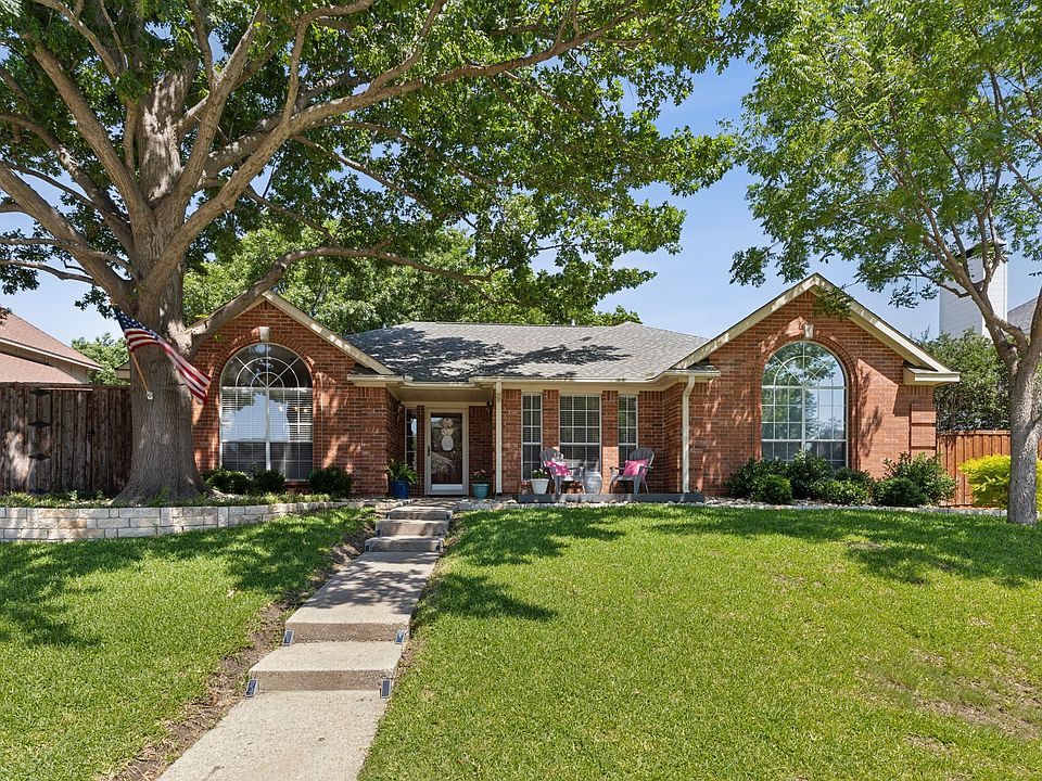 This freshly renovated one story, 4 bed 2 bath home in sought-after Cottonwood Bend boasts stunning curb appeal with mature trees and no HOA! Upon entering, you'll find a flex room perfect for an office or extra living space, seamlessly connected to the formal dining. The open-concept kitchen and living area is perfect for entertaining. Kitchen features granite counters, a breakfast area, and stainless appliances. Stove plumbed for gas. The welcoming living room includes a wood burning white brick fireplace. Enjoy new LVP flooring throughout. Spacious master suite offers a large walk-in closet. Bathrooms tastefully updated. Secondary bedrooms are generously sized, providing ample space for family or guests. The large, private backyard features a board-on-board fence and beautiful oak trees. Additional highlights include a 3-car wide driveway, insulated garage door, fresh paint, and new light fixtures. Don’t miss this incredible opportunity to own a beautiful home in Allen ISD!