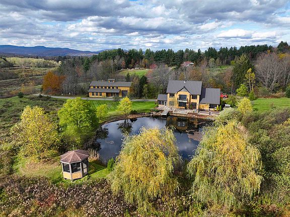 The perfect mix of country and modern, this stunning home sits beside a private pond with gorgeous views of Jay Peak and the Green Mountain Range. The home offers a huge entry with loads of space to hang your gear after a day on the slopes, on the golf course, bike trails, out in the yard, etc. From the entry, you are welcomed by an open concept with large kitchen including an island, an oversized dining table, and a comfortable living room. Finally, a 3-season porch, den or office, and a full bath wrap up the first floor. Radiant heat keeps your toes warm but if you come in from the cold you will enjoy the centrally located Vermont Castings wood-burning stove. Upstairs you'll find a sitting area, two guest rooms, and the primary suite with a walk-in closet and private bath. The home boasts a passive solar design with a huge deck on the south side looking over the private pond. Opposite the house is a large barn for storage as well as an area that would make a great workshop or rec room. Upstairs is more storage as it is but could be renovated into a 2-bedroom apartment provided proper water and wastewater permits are secured. All this under 10 miles to Jay Peak Resort and 12 miles to downtown Newport and Lake Memphremagog! Acreage is subject to final survey.