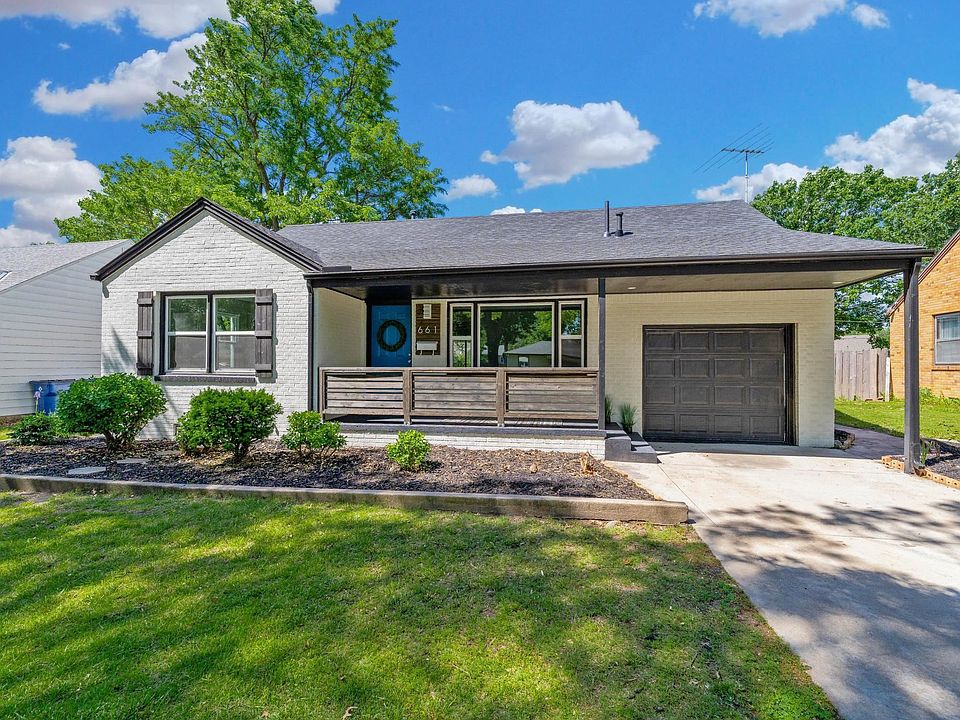 MULTIPLE OFFERS-BEST & FINAL OFFERS DUE- FRIDAY 5/16/25 3PM LIKE NEW! This home has undergone a complete remodel —both inside and out! On the main floor, you’ll find two bedrooms and a hall bathroom equipped with anti-fog technology, dimmable lighting, and memory function. The kitchen has been fully updated with all new appliances, granite countertops, sink and cabinets enhancing its modern appeal. The living room features built-ins and charming decorative fireplace, combining style with practicality, Hardwood floors preserve the home’s classic character. The spacious laundry/mudroom is conveniently located on the main floor. Fresh interior paint throughout, new light fixtures and flush-mount lights that offer multiple settings. Upstairs is a private master suite, half bath and built-in drawers for the perfect retreat or could easily be used as an office. Outside, enjoy a new roof, covered back patio, and inviting front porch—ideal for relaxing or entertaining. The new windows throughout not only improve curb appeal but also enhance energy efficiency and natural light. A fenced yard and the new wood fence create amazing curb appeal. Located in a desirable southeast Wichita neighborhood, with easy highway access and close proximity to shopping and dining—schedule your showing today!