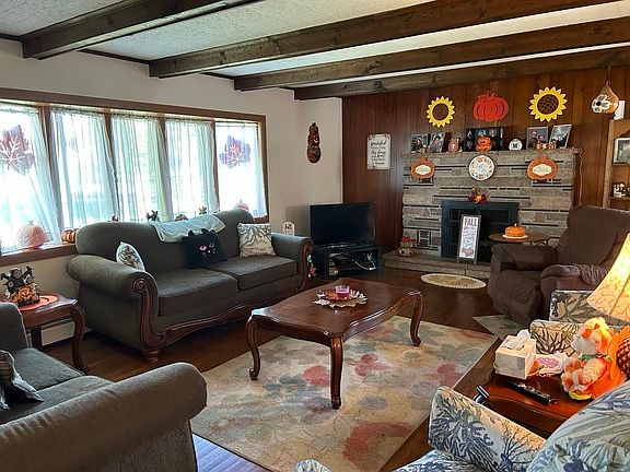 Home is in need of some TLC!! This brick front rancher can be a great starter home. Three bedrooms and two full bathrooms, a large living room, large dining room and eat-in kitchen can meet all of your needs!! Hardwood floors throughout, raised panel interior passage doors, ceiling fans, stone front wood burning fireplace, convenient laundry closet, ample closets, master bedroom suite, windows on all sides, and a bow window and wood beams in the living room all offer character and charm. Outdoor access to utility room and hurricane entrance door to crawl space. Backs up to the Cold Spring Bike Path. Large, fenced back yard with enormous potential. Large deck with composite decking, PVC railings, stone paver patio, and screened in gazebo.