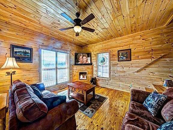 Fantastic mountain views! Want to make money with a great rental? Perhaps make this your vacation home? Rare find with 5 bedrooms 5 full baths located close to Pigeon Forge, area attractions and the Great Smoky Mountains. Gorgeous cabin with three full floors of living area. Master on main level with oversized living and dining area featuring a fireplace in living room. Enjoy the hot tub located on one of the three decks.The lower level offers two full bedrooms and baths with a laundry area and state of the art theater room. The top level boasts two more full bedrooms with full baths, and a game room that will be the envy of your friends. Lots of arcade games, air hockey, pool table and exercise/treadmill area. Top quality furnishings included. Community swimming pool. VIEWS!