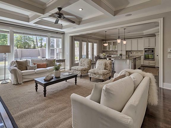 • Great Room: Molding, Floors-Hardwood, Ceilings-High (over 9 Ft), Ceiling Fan, Recessed Lights
