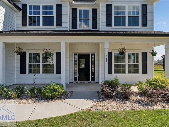 This stunning 5 Bdrm, 4 FULL Bath home loaded w/upgrades! Settled in Woodland Trail Subdivision, home features wide plank, multi-length LVP flooring throughout entire home! Entry foyer w/ceiling open to 2nd story, Study w/Custom Built-In's & Window Bench, Formal Dining Rm w/Coffered Ceiling, Custom Butler's Pantry Cabinet w/Quartz Countertop. Spacious Living Rm w/Chic Custom Wall/Mantle Electric Fireplace, Gourmet Kitchen w/Quartz Countertops, Range/Oven & Wall Oven w/Built-In Microwave, Large Center Island - Great for family dinners, Walk-In Pantry w/shelving. Main floor also features the perfect Guest Bdrm w/Full adjacent Bathroom for company. Large upstairs Primary Bedroom ensuite w/TWO Walk-In Closets, Bathroom- Double Vanity Sinks, Garden Style Soaking Tub & Stand-Up Shower. 3 addt'l nice sized bdrms, one featuring an Ensuite Bathroom. Laundry Rm w/cabinets. Screened Porch w/Custom Brick Fireplace, gas hookup. Black Gutters, 4-zone irrigation.
