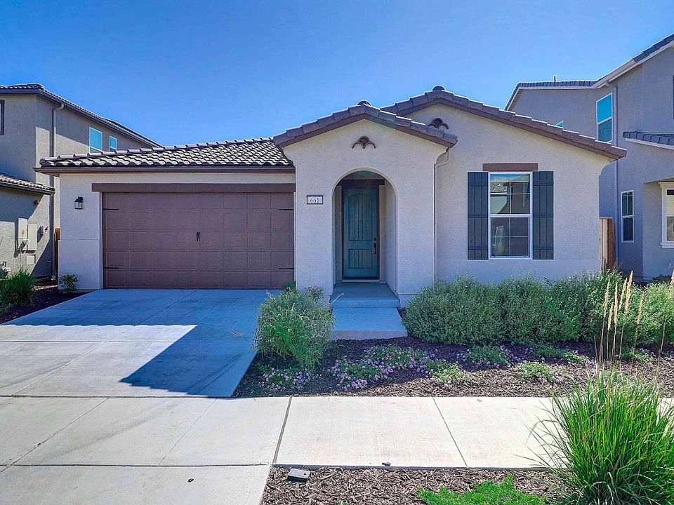 Practically new home, only 7 months and very light usage. Single story 3 bedroom plus den, 3 full baths. The Coral Model in the Cerrato new home community. Tankless water heater, Leased solar system. Priced to sell fast.