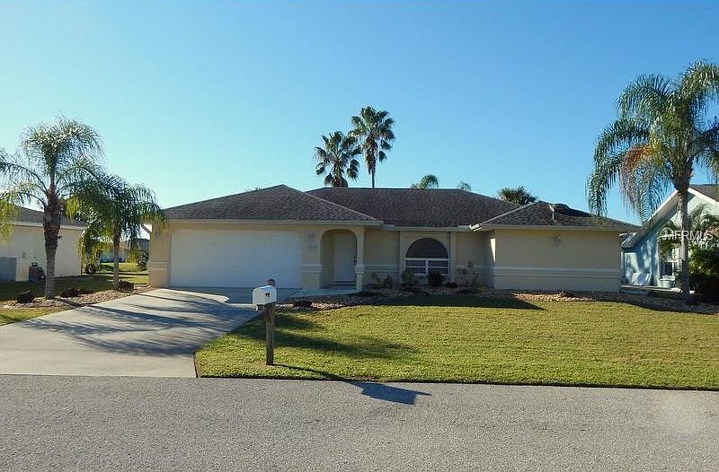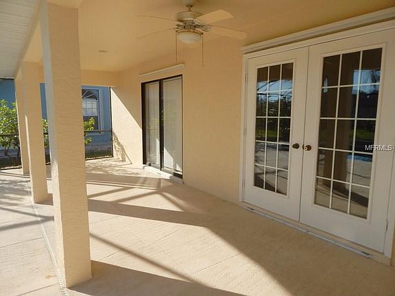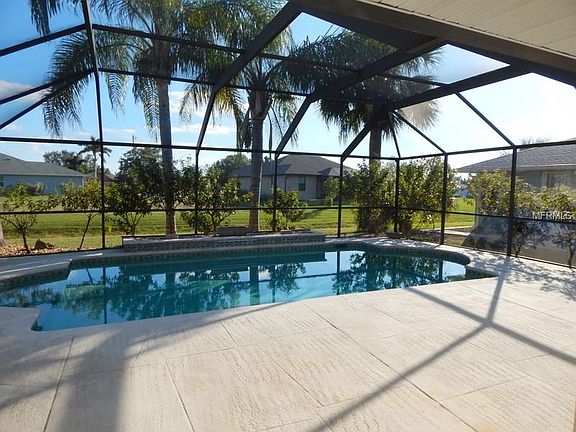 Nice 3 Bedroom home with sparkling pool and large covered lanai overlooking the greenbelt! Situated on a quiet cul-du-sac street in beautiful Burnt Store Meadows with an ideal southern exposure to the rear. Extras include -Exterior freshly painted, great landscaping with curbing and rock all around home, storm shutters. Enter to a large living room with vaulted ceiling, French doors open to the lanai from the dining room. The kitchen has a breakfast bar that opens to the large family room. Enjoy breakfast with a serene view of the pool with waterfall feature. The large covered lanai is the perfect place to entertain. Two guest bedrooms off the family room and the guest bath doubles as the pool bath. All bedrooms have generous walk-in closets! The master suite offers sliding doors to the lanai, two walk-in closets, a large bath with double sink vanity, tub and step-in shower. A little dated, but it has excellent space to update and the price reflects this. Burnt Store Meadows is an attractive, deed restricted community with city water and sewer just minutes to downtown Punta Gorda and a quick trip to Ft Myers. Many new homes are being built in the neighborhood.