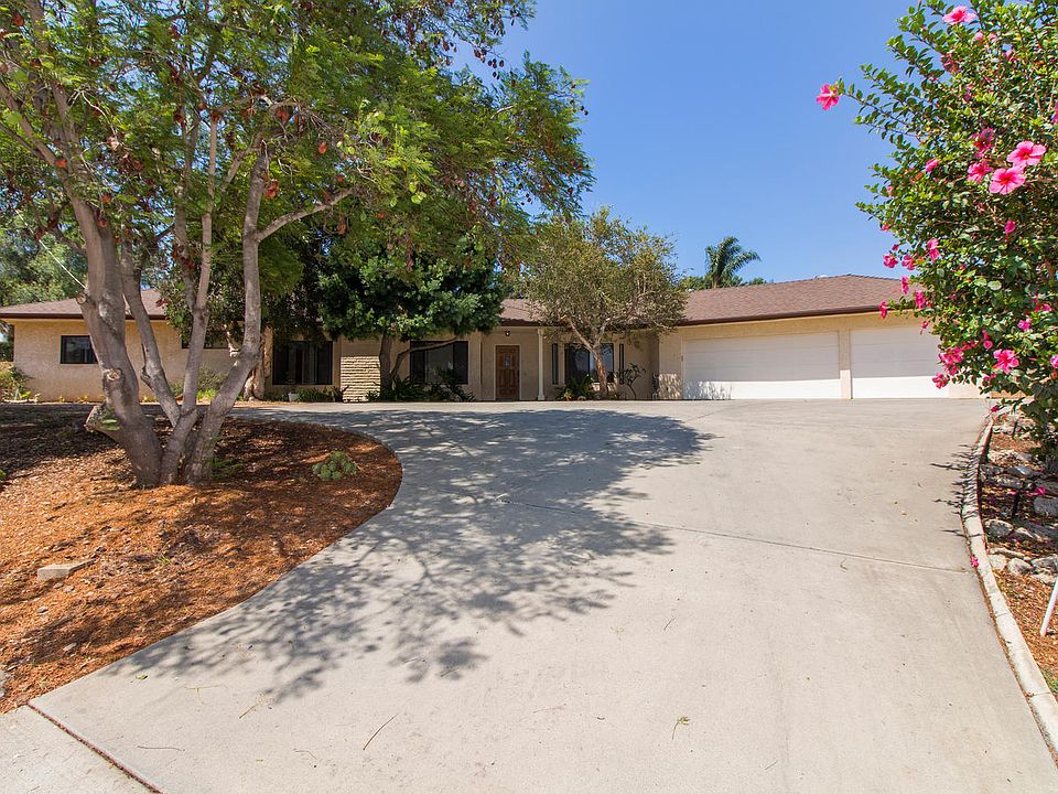 Peaceful & Serene property located in the desirable Sleeping Indian community of West Fallbrook. Enjoy the afternoon breeze & fruit trees on this fully usable acre plus lot. Home has an open floorplan complete with a beautiful fireplace in the living room, Spacious Master bedroom & guest room, with an additional office. Oversized 3 car garage with plenty of built-in storage and workshop area. Property features covered RV or trailer parking and a large shed.