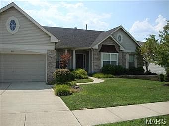 This beautiful ranch in Legends Golf Community is located in AAA Rockwood School District. You will fall in love with this professionally landscaped 3 bedroom, 2 bath home. Beautiful hardwood floors throughout all bedrooms, dining room & great room. The great room features vaulted ceilings, a brick fireplace and an open floor plan that flows into a large eat in kitchen with beautiful slate flooring. The master bedroom features vaulted ceilings, walk-in closet, separate bath & shower and double sink. Both bathrooms have slate flooring as well. 10 foot ceilings through the main level of this home! The walk out lower level has a lovely Atrium and is perfectly finished with rec room and a rough in bath. The home has tons of appeal. located in a great community with sidewalks, swimming pool and tennis courts. The roof was replaced in 2012. This is one your clients will want to see!