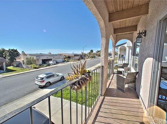 Nice ocean views from multiple venues for this home featuring an open floor plan with plenty of light. The kitchen features newer Samsung smart appliances, decorative tile backslash and opens to the living and dining areas with direct access to the balcony. The master bedroom features ample closet space, crown molding and sliding glass door access to the backyard adding extra outdoor living space, ideal for entertaining. Decorative block stairs lead to the back view deck for enjoying fabulous sunsets and ocean views. Newer polyfresco roof, travertine floors in the living areas and laminate flooring in the bedrooms, recessed LED lighting and epoxy coated garage floor. Conveniently located just minutes to downtown Pismo Beach, hiking and biking trails and world class wineries.