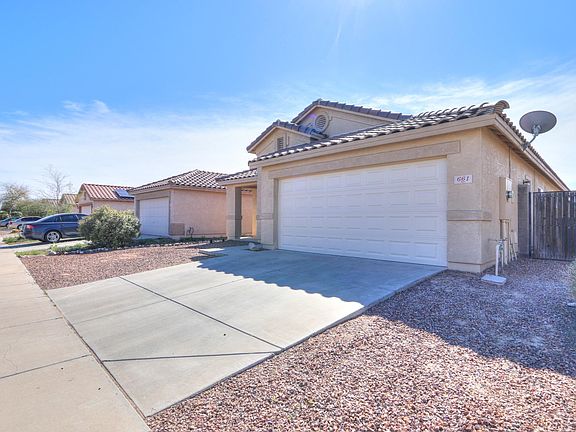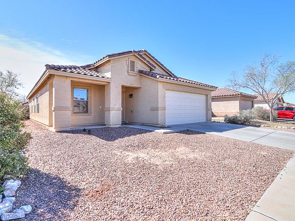 This home features newly installed ceramic tile flooring in every room and ceiling fans in all bedrooms and the living room. The open dining and kitchen area includes all appliances, a convenient walk-in pantry, and an Arcadia door leading to the covered back patio perfect for entertaining. The dining area is accented by a picture window wall that separates it from the spacious living room. The master suite offers a generous walk-in closet, plus a new vanity and shower doors. Additional upgrades include new blinds throughout, inside laundry, and a 2-car garage. Washer and dryer are also included. A block wall backyard provides privacy and security. Owner pay HOA due, tenants pay all other utilities.
