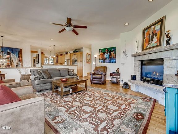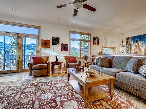 Sweeping 180 degree views from Beaver Creek to Arrowhead to Cordillera from this immaculately maintained duplex. Ideally located across from the first fairway of the Sonnenalp golf course, it is a short walk to the clubhouse for tee times, dining or happy hour. Watch the sunrise from the front balcony and the sunset from the private patio off the kitchen/dining room. Enjoy hardwood floors throughout the main living level, primary and guest bedroom. Each bedroom has its own bath plus a powder room on the main level. The primary and one guest bedroom are just two steps up from the main living level for easy access. Relax in the large steam shower and jetted tub in the primary bath. Use the lower level bedroom for a combined office/guest bedroom with its own separate entrance and extra parking space. An oversized, two-car garage completes this lovely home - must see!