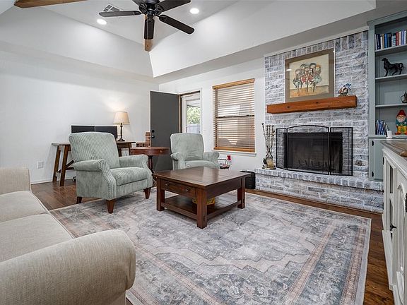 Multiple Offers Received. Wow! Look at the CURB APPEAL on this UPDATED 3 bedroom, 2 bathroom home. The exterior has beautiful and professionally done LANDSCAPING with all new EXTERIOR PAINT. The interior has been painted along with the woodwork with neutral and calming accents. There is NO CARPET to take care of and has tile or WOOD throughout. The living area has a real WOOD BURNING FIREPLACE perfect for those cold evenings. The kitchen has been updated from original with all NEW CABINETS and TOPS. Primary is spacious with an UPDATED ENSUITE and large WALK-IN CLOSET. The backyard is so peaceful with mature TREES, a STORM SHELTER, covered patio and a LARGE SHED that was built on site with a concrete pad. Call today for your showing!