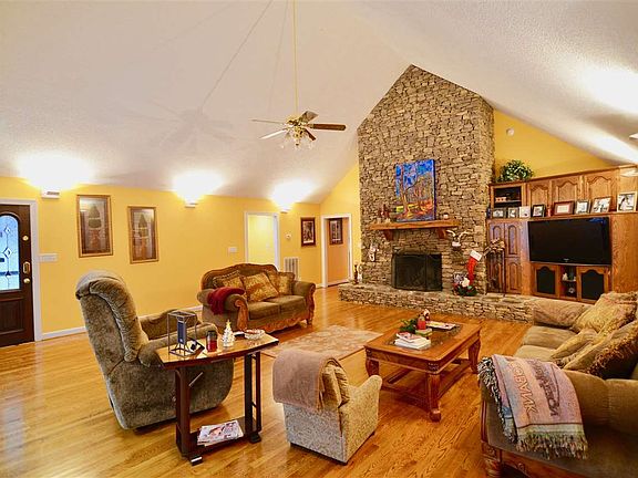 HOKES BLUFF - ACREAGE - Large Private home tucked away on 8.3 wooded acres leading to Coosa River. Home features large family room with vaulted ceiling and rock FP with built-in shelving, eat-in kitchen with granite countertops and travertine backsplash; formal dining; large master suite with shiplap accent wall, private bonus loft and marble and tile master bath with garden tub, rain shower, and large walkin closet; extra guest room with ensuite; 2 add spacious bedrooms on main level. Full basement featuring FP, theatre, full kitchen, additional bed and bath, and office/storm shelter. Unfinished space in bsmnt for storage and 3-car garage. 2500 Sqft deck and gazebo across back of home.