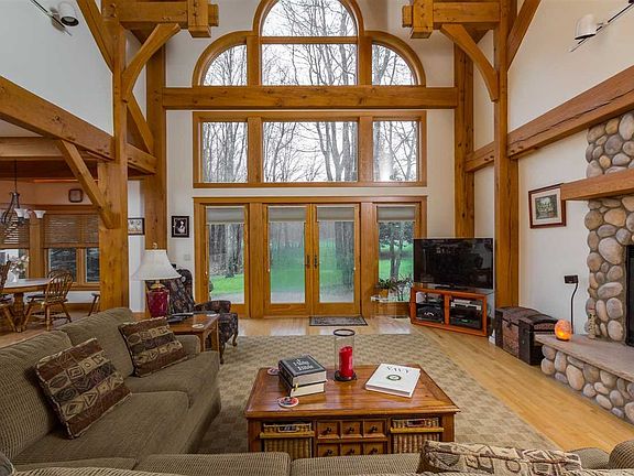 Beautifully crafted timber frame home with extensive woodwork and dramatic beamed cathedral ceilings.The abundance of windows offer views overlooking the 7th fairway of the Moor golf course at Boyne Highlands. Features include a 3 season porch, stone fireplace, hot tub room, stone patio, covered porch, hardwood floors, 3 car heated garage w\ bonus room, and a spacious kitchen ideal for entertaining. Enjoy the north`s best golf & skiing along with area lakes, and the charm of nearby Harbor Springs..