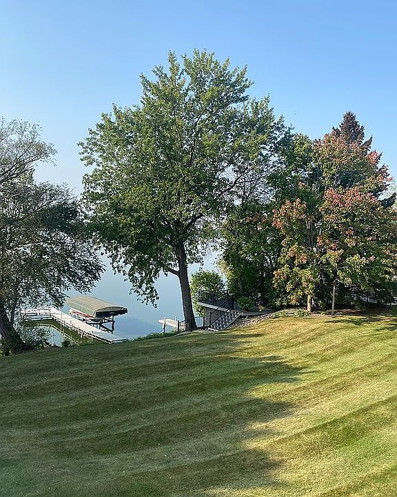 Beautiful lakefront home. Landscaped backyard with finished walkout basement. Open floor plan. Panoramic views of Lake Byllesby from the living room and master bedroom. 3 car radiant floor heated garage with double deep stall for boat storage. 2 gas fireplaces. 2 furnace and A/C units