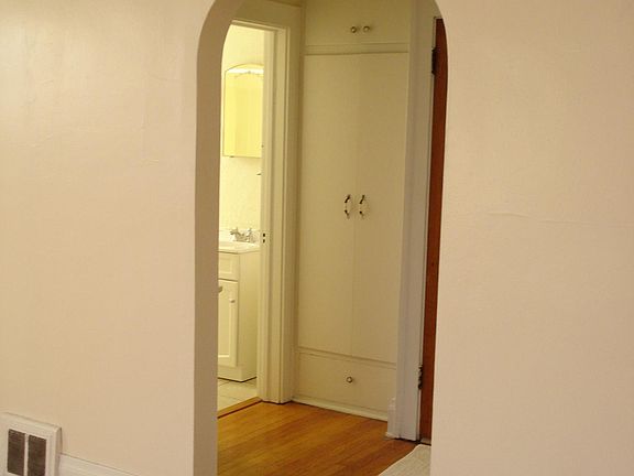 Features: Upper apartment of duplex with 1920's charm with nearly 700 square feet of living space and plenty of character. Hardwood flooring throughout, except tile in bath and vinyl in kitchen. Kitchen has gas stove, refrigerator and ceiling fan. Windows above the sink. Walk-in pantry off the kitchen. Open Living Room with sunny Eastern and Southern windows. 1 Bedroom with walk-in closet and Western facing windows. Bathroom with tile floor and shower over tub. Hallway has coat closet and linen closet. Bright, bonus side room which works as an office, sitting room, etc. Basement access is from outside with dedicated washer and dryer and additional storage. Smaller one car garage with automatic door and one, off-street parking spot next to garage. Mature flowering, fragrant tree in yard gives a fun tree-house feeling to the apartment. Heat is own forced air furnace with own central A/C unit. Motion activated security lighting on the property. Tenant pays power (electric/gas) and water utilities (upper utilities are separated from lower unit) Duplex is a couple blocks away from Roosevelt park. Some snow removal required by tenant. No dogs allowed. Other pets may be accepted upon landlord approval, an additional $200 pet deposit and an additional $25/ month rent is required if pet is approved. No smoking allowed in any of the buildings