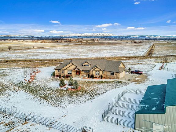 **Price Improvement** Spectacular panoramic rim views of the valley & distant mtns makes country living at its best on 22 acres. Riding arena by the rim provides a perfect workout area w/ riding trails nearby. Large barn open at one end + lean-to offers storage space/tack rm/4 horse stalls w/ fenced pads. Shop & RV Bay w/50 RV amp service gives versatility. Beautiful custom designed home, accented wood beams, wood laminated floors adds warmth, durability, & easy up keep. Wood wrapped Anderson windows throughout adds natural light & ambiance. A stone faced fireplace wrapped with built-in shelving for cozy nights. Custom lighted wood hutch showcases the open kitchen & dining room complimented by the expansive granite island makes for special gatherings. Knotty Alder cabinetry throughout. Over-sized covered patio. Off County line Rd & Hwy 52 going to Emmett. Detail list available. VIDEO: https://youtu.be/33C-Wm4iAyA