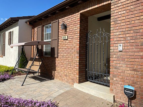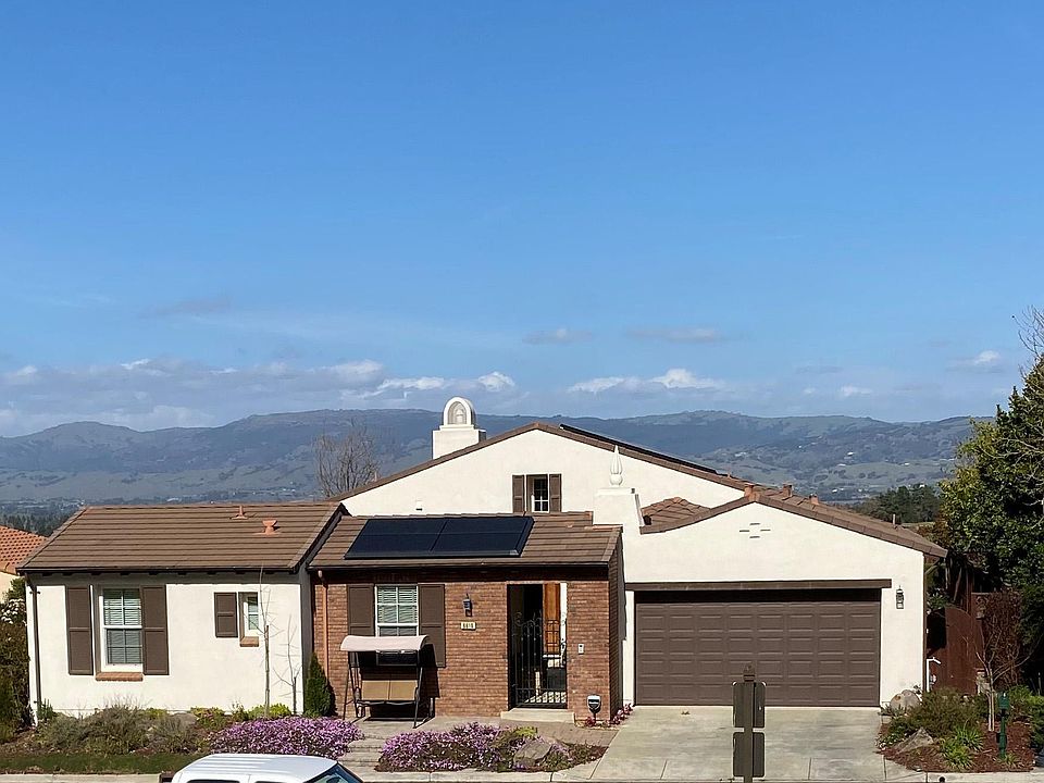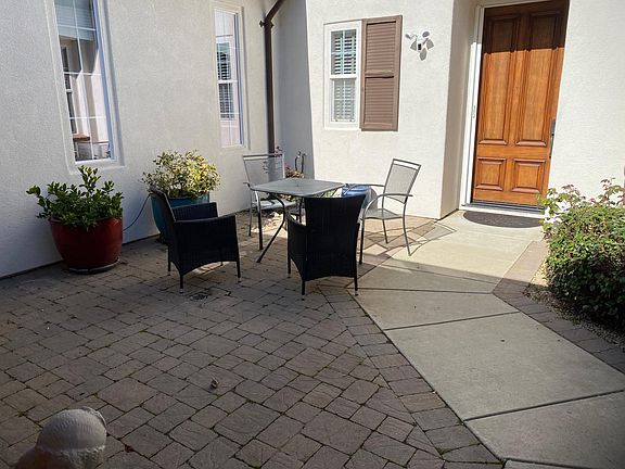 From the sunny courtyard you enter into a beautifully designed, highly-desirable one-story home. The great room shows off high ceilings, gas log fireplace, large windows, big screen TV, and beautiful wood floors. There's a spacious kitchen/dining area with a large island, granite counters, and a generous walk-in pantry, gas cooktop, double ovens. Refrigerator and washer/dryer are included. A dedicated office is adjacent to the living room with large standing desk, file cabinets for your use, and bookshelf. Additional amenities include an alarm system, outdoor security cameras, ceiling fans in all bedrooms. One bedroom features French doors that open onto the courtyard. Another includes an exercise bike and TV. The master suite features a walk-in closet and French doors leading to the cozy, low maintenance back yard. The master bath features a large soaker tub, and a separate shower, dual sinks, water closet and a built in vanity. This house has a generous solar array with dual Tesla power wall battery back-ups, and an outlet to charge your electric vehicle. Enjoy beautiful views of the hills and city lights. Plenty of parking in the tandem 3-car garage too. The home is completely furnished including linens, with a king bed in the master, a queen, and two bedrooms with twin beds. The furnishings are contemporary and comfortable. The community offers a large swimming pool, clubhouse, tennis and Pickleball courts, basketball, children's playgrounds, and an 18 hole golf course (green fees apply). One adult dog up to 25 pounds allowed. Tenant pays all utilities. Owner pays HOA fees.