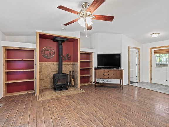 Relax and enjoy life at the lake! This 3 bedroom, 2 bath home sits on a fully fenced one acre lot in a park like setting to enjoy peace and tranquility This home boasts large open living areas, beautiful flooring throughout, oversized kitchen, wood stove for those chilly winter nights, an ensuite with double sinks, garden tub and an adjoining office. Step outside to the fully fenced yard with an array of fruit trees, berry bushes, covered patio, water feature, large shop, storage shed and also you can have up to 2 horses and chickens. Then just a block away enjoy the shared beach with picnic area, swim area and boat launch for fishing and exploring the 54 mi of shoreline of Long Lake. This home truly has something for everyone in the family! Come enjoy life at the Lake!