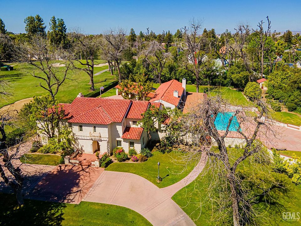 This is a rare opportunity to own one of the most iconic properties in Olde Stockdale. This classic Spanish style home was built in 1931 and is situated on a huge 1.23-acre lot in one of the best locations on the golf course. There is a spacious covered patio which is great for entertaining and overlooks the large pool and backyard with gorgeous mature trees and landscaping. As you enter the home, you will appreciate the grand stone and wrought iron staircase, foyer, elegant living room with a huge carved stone fireplace and wood flooring, and the formal dining room. Warm and inviting family room with wood paneling on the walls and ceilings as well as exposed wooden beams. The primary suite has breathtaking views of the course. Exterior features include an extensive courtyard with Spanish pavers, a breezeway with several arches and a blue tiled fountain, all of which have a direct view of the golf course. This property will be even more gorgeous when you add your own personal touches!
