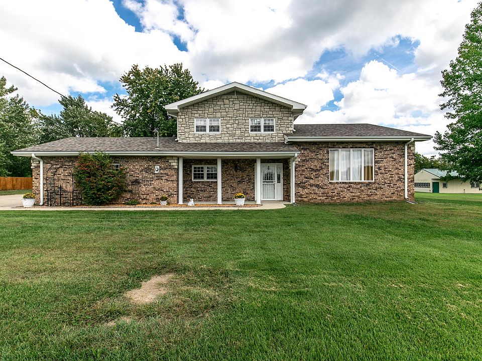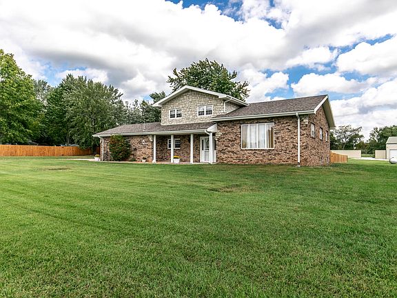 Nestled on 11.5 acres in the Willard School district, this all brick & stone home has so much to offer. Highlights of the property include a 50x60 shop with automobile lift, 6 garage doors, & full apartment. An additional smaller shop is a fully operational licensed dog kennel for small dogs. This area includes built in pins/kennels, wash sinks, bathroom, and office space. The home itself features 4 beds, 2.5 baths, & attached 2 car garage with concrete drive. Hardwood floors lead you into a spacious entryway. From here you can head up to a formal living area with carpet, trayed ceiling, and wood railing accent. A smaller office/bedroom is right off of the entry, as well as a second living area with gas fireplace. The kitchen has ample amount of cabinet and counter space, (see more..)