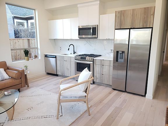 FIRST MONTH RENT FREE. Block One on Greenwich is a BRAND NEW 12 unit boutique apartment with condo grade finishes. This 1 bedroom and 1 bath has large open kitchen and bedroom. 10' ceilings, hardwood flooring, bathrooms tiled throughout, stainless steel appliances, energy efficient heating and cooling, gas range, fridge with ice and water, and the list goes on. Each unit has its own in unit washer and dryer and balcony or patio. Located off Rosa Parks and Greenwich and blocks from New Seasons, the Max train, I-5 and less then 10 minutes to downtown Portland. This is not your typical apartment as it was built with quality in mind. Lease terms 6 to 12 months or more 6 to 12 month leases available. Owner pays for Garbage and exterior maintenance. In unit laundry. Small dogs and cats allowed. Pet deposit is $300 per pet and $35/month pet rent. Max 2 pets. On street parking. Utilities paid by renter however very affordable as the house is new construction and highly efficient.